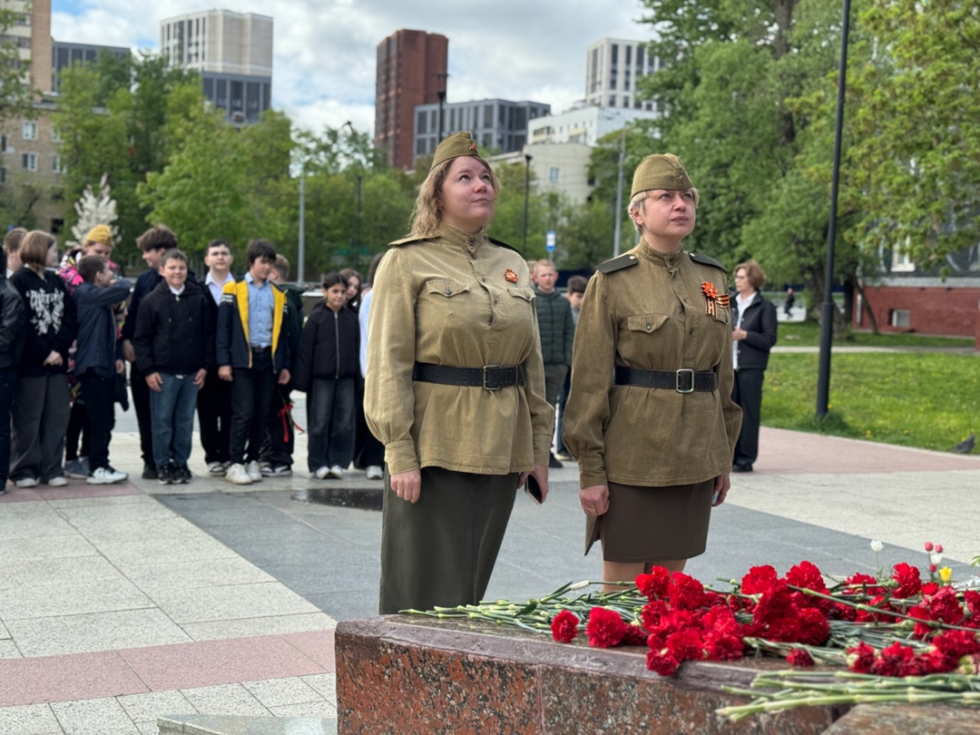 Цветы легли к памятнику маршалу Баграмяну на территории ШК2, к мемориалу и памятной доске в честь учеников нашей школы, ушедших на фронт в годы Великой Отечественной войны, а также к стеле защитникам Москвы. Это — дань уважения и памяти тем, кто отстоял мирное небо над нашими головами.