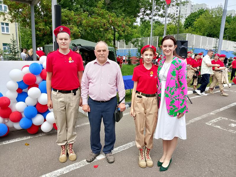 Во время торжественной части прошла церемония награждения знаком «Юнармейская доблесть». Среди отмеченных — Виктория и Егор из отряда «Пылающие Сердца» нашей школы.