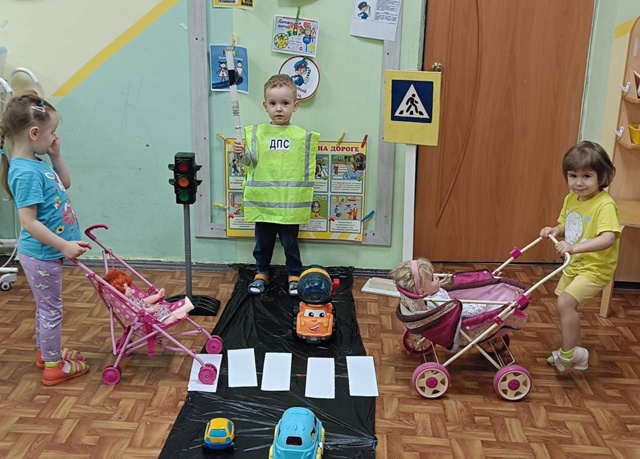 Малыши изучали дорожные знаки, играли в «светофор», рисовали социальные плакаты и пробовали себя в роли водителей, пешехода и регулировщика. В настольно-печатных играх дети закрепляли знания ПДД, а в творческих мастерских создавали объёмные поделки и макеты.