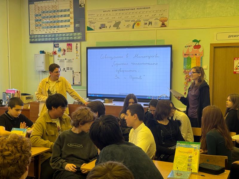 Учитель географии Евгений Игоревич Буркин выступил в роли Министра промышленности и торговли. Его задача — принять стратегическое решение: куда направить ресурсы для развития отрасли?